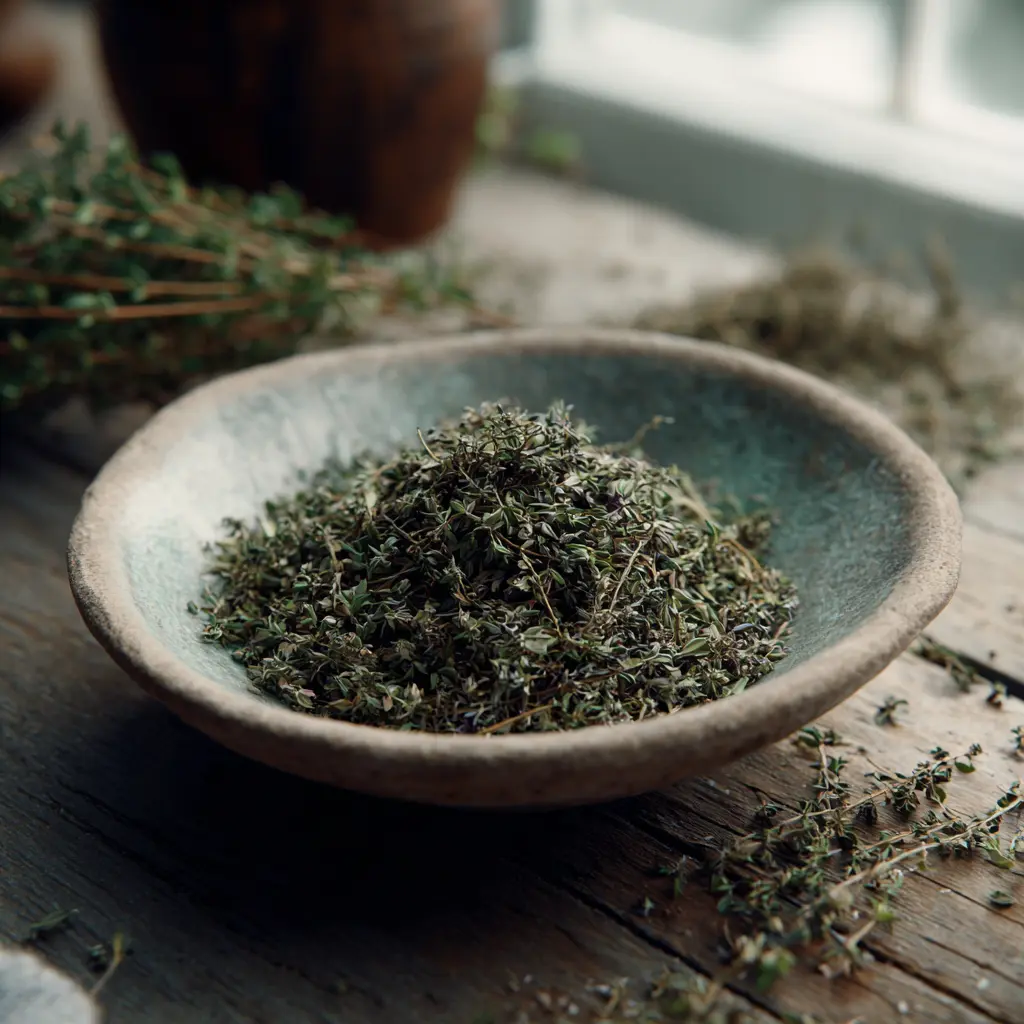 Thyme is frequently associated with traditional household remedies and seasonal practices, reflecting an herbal philosophy that bridges the kitchen and the apothecary. Its versatility and familiarity make it a staple herb that fits naturally into both culinary routines and classic herbal preparations.
